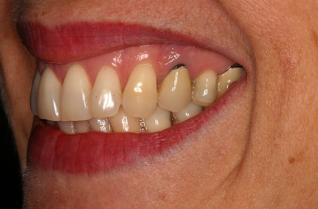 Gum lift surgery (crown lengthening procedure) was completed by Dr. Michael Wiener). After the tissue healed, the replacement of single tooth with CEREC crown (crown made in one day) was completed to improve the patient's smile.