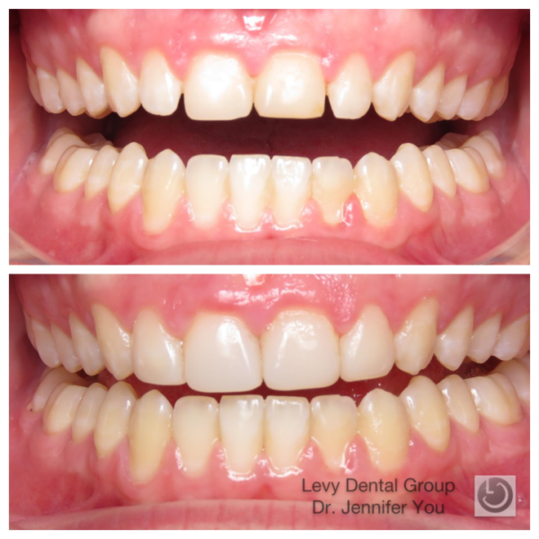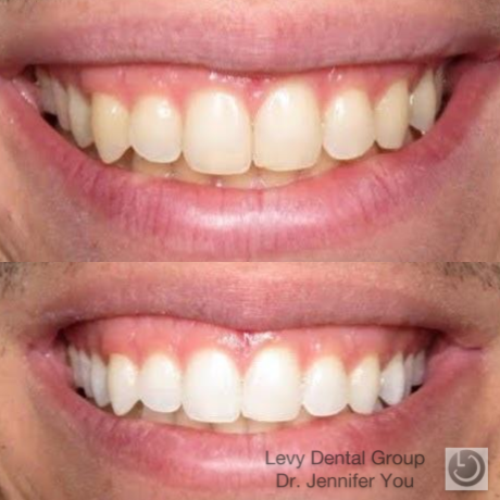 This patient had his four front teeth treated with a minimally-invasive technique using flowable, injectable composite restorations. Patient wanted to improve the size and shape of the teeth after orthodontic treatment.